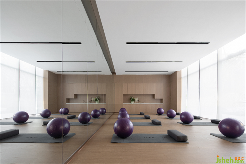 理性與溫暖他同時(shí)交織在瑜伽室內(nèi),木面的儲(chǔ)物柜,鑲嵌的暖光燈正適合用來冥想的空間,如出現(xiàn)在模糊虛影的思緒中,一道點(diǎn)亮你思維海洋的安穩(wěn)光線。