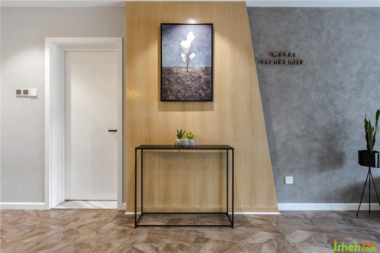 入戶(hù)映入眼簾的是這個(gè)景致,木飾面背景,一幅寧?kù)o優(yōu)雅裝飾畫(huà),搭配黑色鐵藝玄關(guān)臺(tái),簡(jiǎn)約個(gè)性。