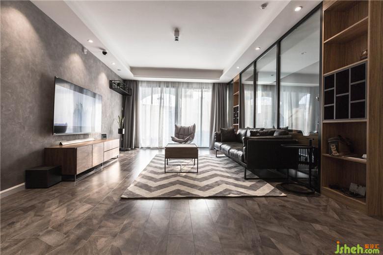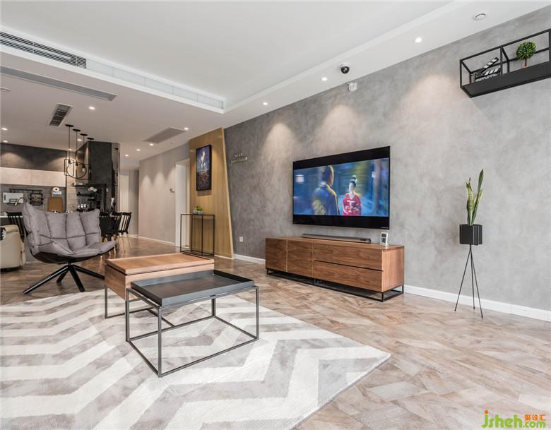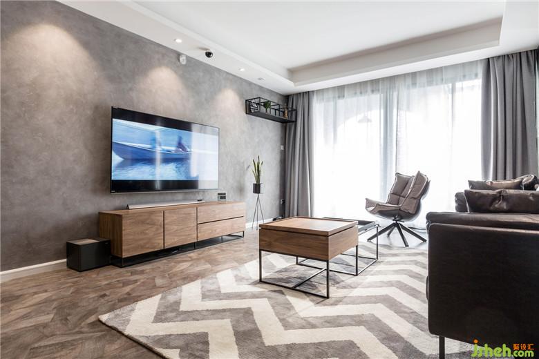 木地板搭配木質(zhì)茶幾和電視柜,以及舒適的大地毯, 增添了居室溫馨舒適的氣氛。