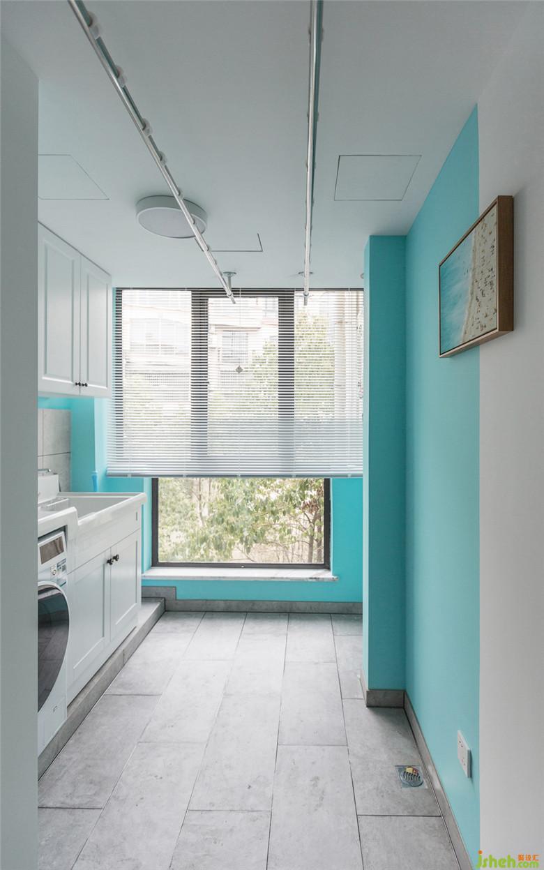 功能齊全的生活陽臺,吊柜結(jié)合洗衣機位和洗衣池一體設(shè)計,室內(nèi)設(shè)計師使空間得到了充分 有效的利用。