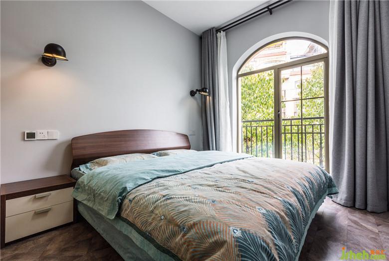 主臥床頭木地板上墻,內(nèi)嵌燈帶,置物同時充當壁燈。