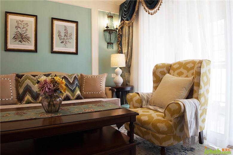 ▲室內(nèi)設(shè)計(jì)師用淺咖與黃色的沙發(fā)搭配,活躍了空間的氣氛