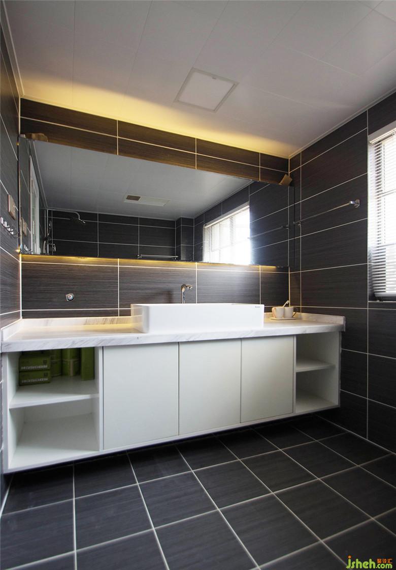現(xiàn)場制作的超大洗手臺,收納不是問題!整面玻璃使空間視覺效果更好!