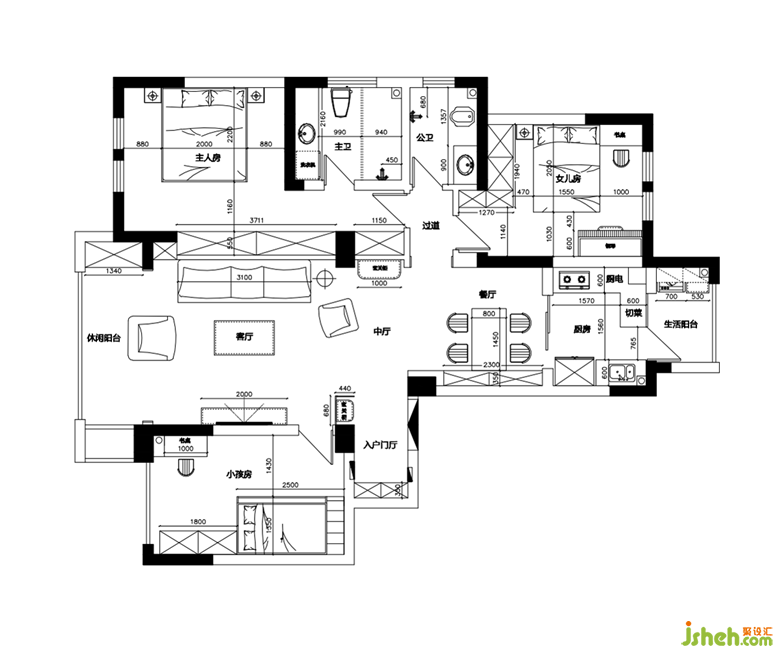 一幅抽象畫成為空間的視覺焦點,起著點睛的作用!