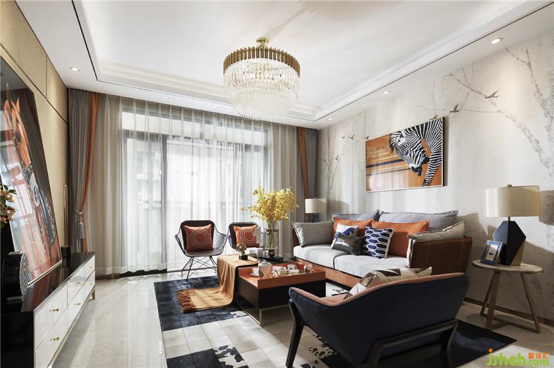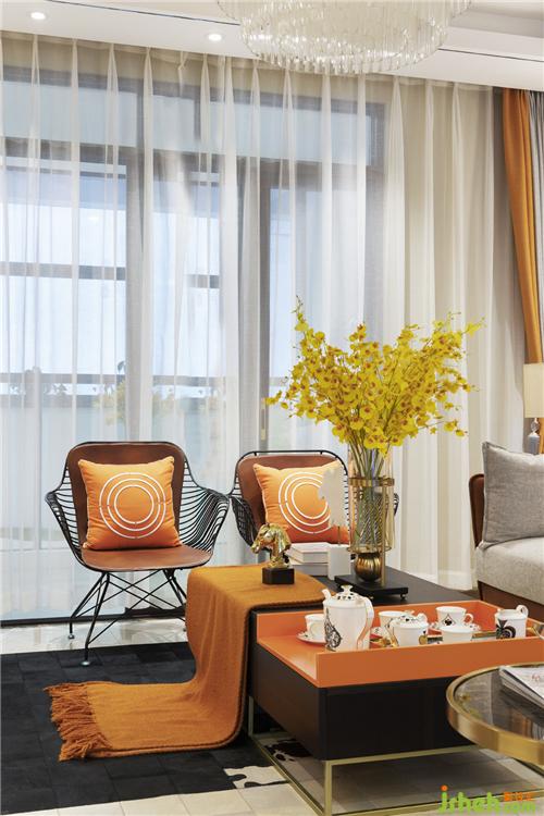 本案設(shè)計(jì)的風(fēng)格為現(xiàn)代輕奢風(fēng),在追求潮流的同時(shí)又想要家中保持溫馨的感覺(jué)。為了滿足時(shí)尚摩登感,在空間中搭入一些金屬、鏡面材質(zhì)進(jìn)去,使整體色調(diào)更顯明亮,再輔以亮色點(diǎn)綴,整體空間精致又不乏溫馨。橙色與藍(lán)色之間有幽微的碰撞,硬裝線條結(jié)構(gòu)的相互呼應(yīng),營(yíng)造出與眾不同的空間魅力,其中有溫暖的冷靜、個(gè)性的簡(jiǎn)約。樣板房設(shè)計(jì)