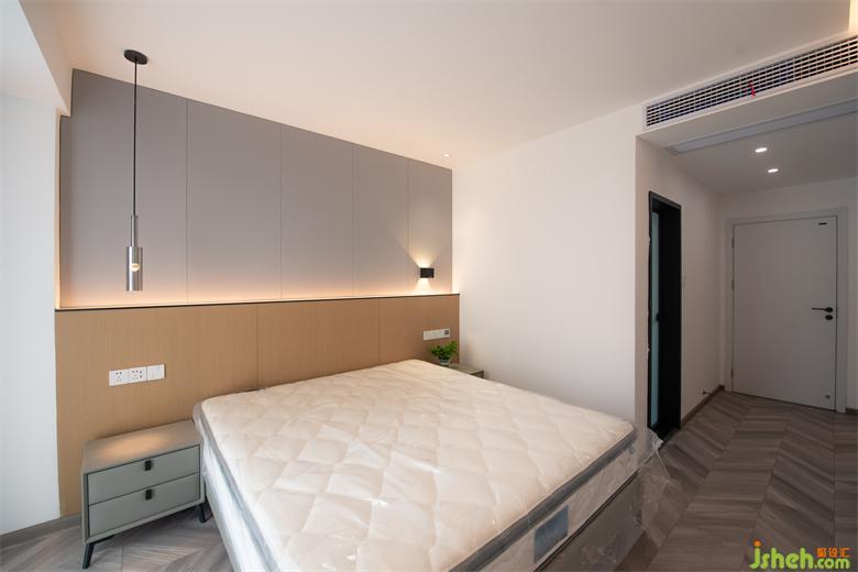 空間以白色及木色調(diào)為基底,大平層裝修設(shè)計(jì)搭配灰色的皮質(zhì)沙發(fā)、夢(mèng)幻簾,在良好的采光下?tīng)I(yíng)造出透亮潔凈的視覺(jué)感受。