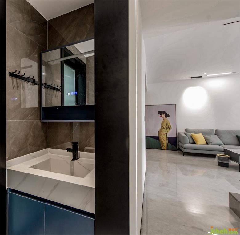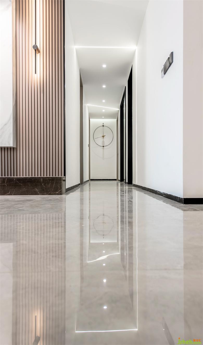 走廊作為緩沖區(qū),將公共區(qū)域和私密區(qū)域分離開來,裝修設(shè)計(jì)師極簡(jiǎn)掛鐘與線性燈相互穿插讓走廊空間也擁有儀式感,散發(fā)出的安謐之意平撫著居住者的心靈,增添細(xì)節(jié)和氛圍的親和力。裝修