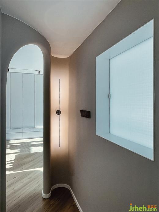 廖奕權(quán)為調(diào)整藝術(shù)品尺寸設計了后墻,并在客用浴室對面的墻壁上建造了一個小門。當男戶主完成繪畫后,他通過小門傳遞臟調(diào)色盤和畫筆,輕松穿過狹窄的走廊,進入浴室進行清潔。