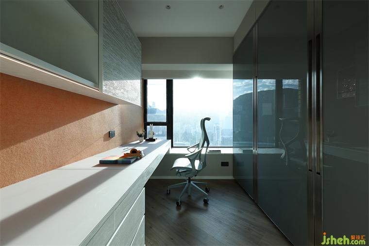由于他們希望充分利用自然光和城市景觀,夫婦在客廳也決定不使用窗簾。由于缺乏軟裝飾,廖奕權(quán)認為公寓的聲學舒適性可能會受到影響,于是他提出使用吸音壁紙(而不是最初的灰泥飾面)來防止更大的空間產(chǎn)生回聲。