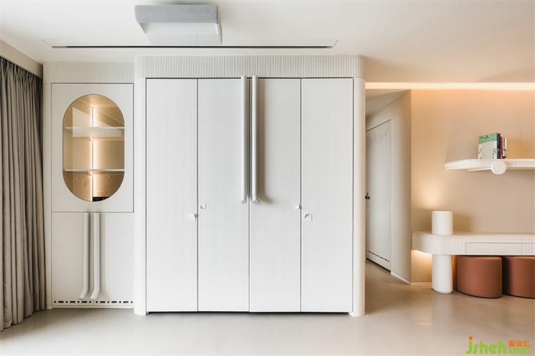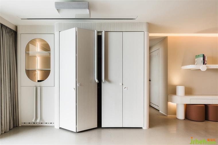 香港豪宅設(shè)計(jì)把廚房縮細(xì),把局部位置改為獨(dú)立的玄關(guān)換鞋區(qū)。