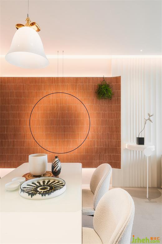 香港豪宅設(shè)計元素進(jìn)行空間對話不同紋理的墻面材料像畫布一樣重疊和交叉。客廳和餐廳以灰白色為基調(diào),界定出清晰的領(lǐng)域,同時保持空間的平滑過渡。鏡子和紅磚的屬相,搭配明亮大膽的材質(zhì),結(jié)合幾何元素和藝術(shù)時尚燈具,賦予居住空間豐富的生活情趣和表現(xiàn)力。