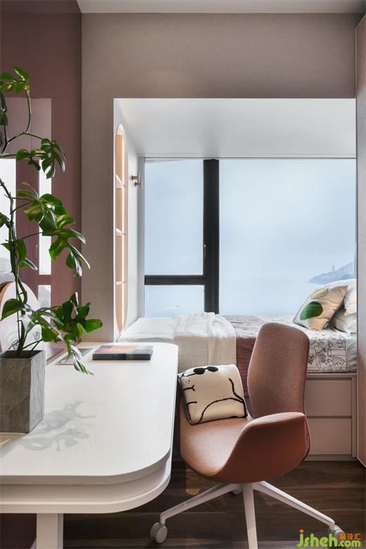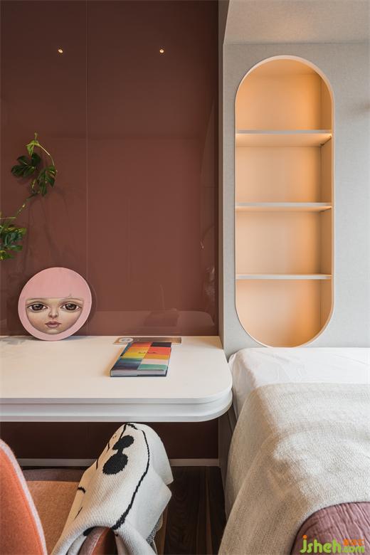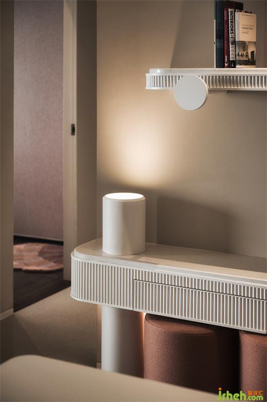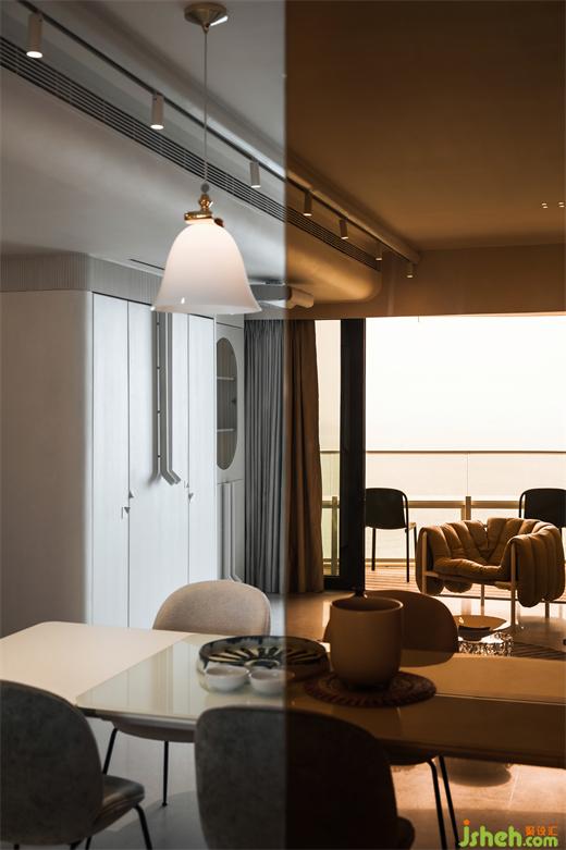 單位擁有長形大廳,當(dāng)中尤其矚目的,莫過于一幅來自意 大利的磚紅色手工瓷磚墻; 其微彎的邊緣,讓人聯(lián)想起紙卷輕 盈的形態(tài),并且與燈具、柜組及墻身的圓弧造型互相呼應(yīng),為廳區(qū)締造亮點。 由于飯廳欠缺天然采光,設(shè)計師又大膽地為正 對窗戶的墻身鑲設(shè)一幅橙色鏡屏。 香港豪宅設(shè)計在營造低調(diào)反射效果之余, 亦與磚墻用色相呼應(yīng),進一步為空間帶來視覺沖擊。