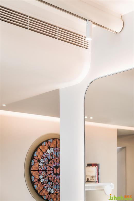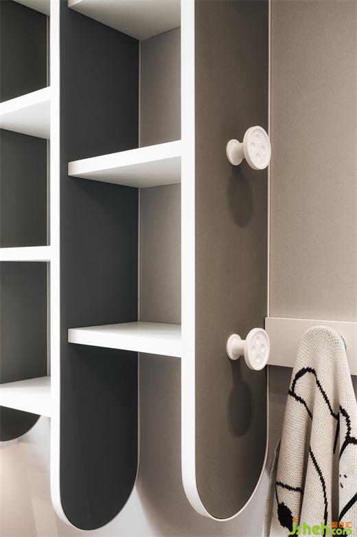 本案屬于一個年輕的四人家庭,戶主夫婦不滿足于尋常俗套的設(shè)計模式。 最后他們挑選了對空間及藝術(shù)均擁有過人觸覺的設(shè)計師全權(quán)為新居進行規(guī)劃。 單位間隔作為整體設(shè)計的重要 框架,設(shè)計師今次亦從平面圖開始,以宏觀的角度,為居者塑 造最實用適意的生活空間。 首先,玄關(guān)旁邊的廚房面積較大, 設(shè)計師將部分空間規(guī)劃出換鞋區(qū)及鞋柜,從而豐富空間機能。 另外,玄關(guān)區(qū)以一高一矮的掛墻抽屜柜作為空間的過渡與后續(xù),同時為常用小物及藥品等提供方便的收納位置。