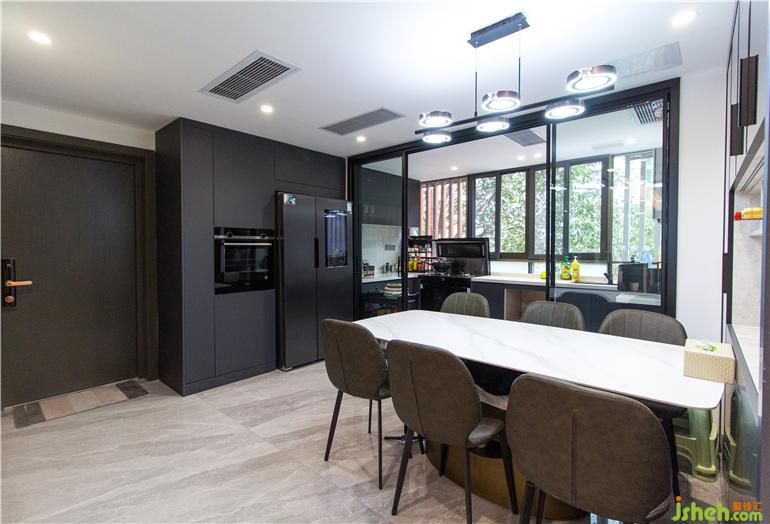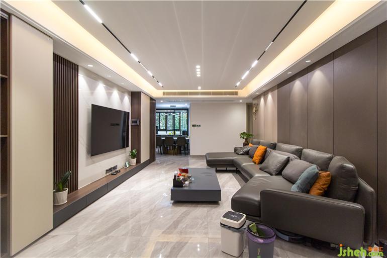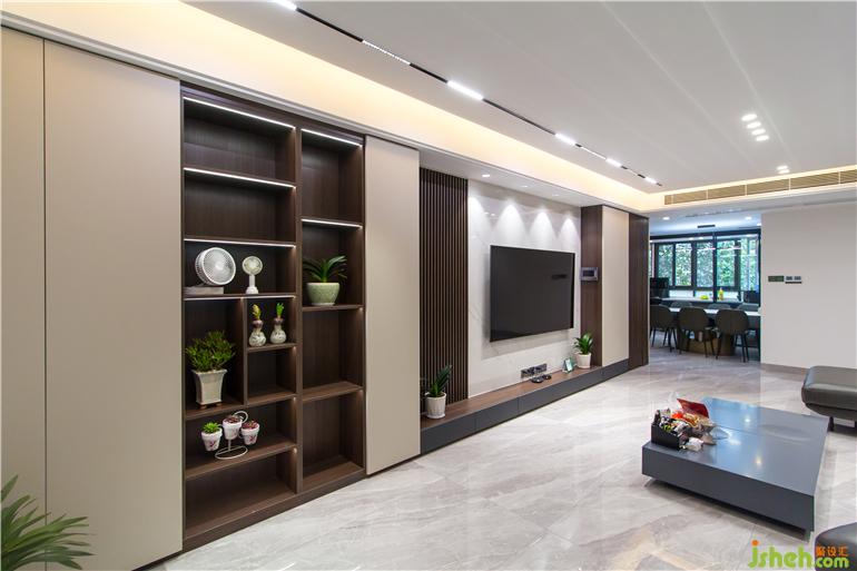 深圳現(xiàn)代設(shè)計(jì)空間上選用具有現(xiàn)代質(zhì)感的材料設(shè)計(jì),內(nèi)斂的啞光材質(zhì),相比于閃耀的亮面材質(zhì),更加凸顯空間質(zhì)感。深淺咖色的木質(zhì)背景色和白色的大理石顏色形成鮮明對比,展示性豐富的柜體立面,整個(gè)客廳給人眼前一亮,營造出大氣的空間氛圍。黑色的意式皮沙發(fā)與極具質(zhì)感的黑色布藝窗簾,跟餐廳的電器柜相互呼應(yīng),整體色調(diào)和諧統(tǒng)一,彰顯品質(zhì)。寬闊的空間格局,通透明亮,黑色的色調(diào)設(shè)計(jì)在這里一點(diǎn)都不壓抑。深色配色風(fēng)格中,極具視覺張力的色彩,構(gòu)成剛剛好的空間溫度。