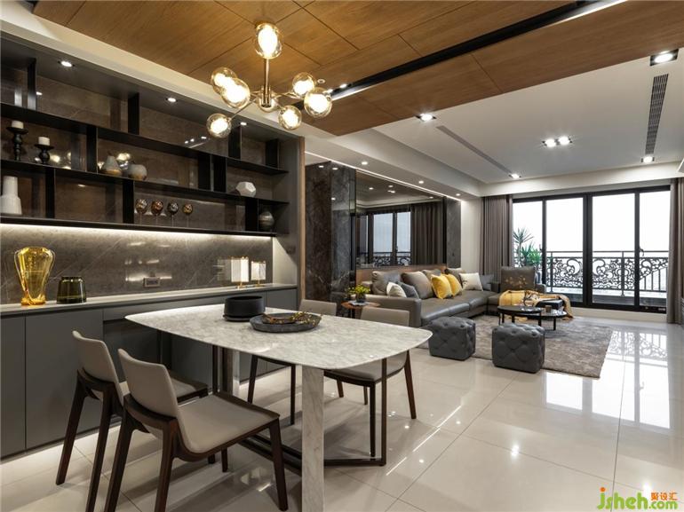 客廳餐廳既保持互通相連,又體現(xiàn)每個空間的獨立性。裝修設(shè)計明亮質(zhì)感和玻璃酒柜相結(jié)合,既給予空間通透的觸感,又給予燈光折射的溫暖,無論是獨處時的自在,亦或家人親朋圍坐兩旁,溫馨舒適豐盈自在依然縈繞在心。