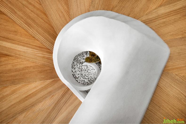 旋轉(zhuǎn)樓梯和櫥窗的中軸線相對(duì)應(yīng)室內(nèi)設(shè)計(jì)師