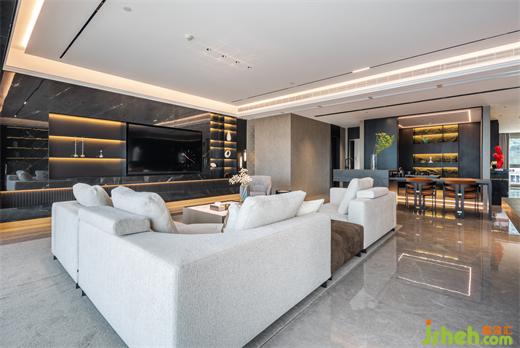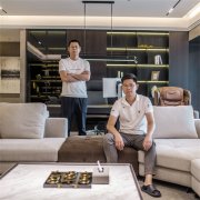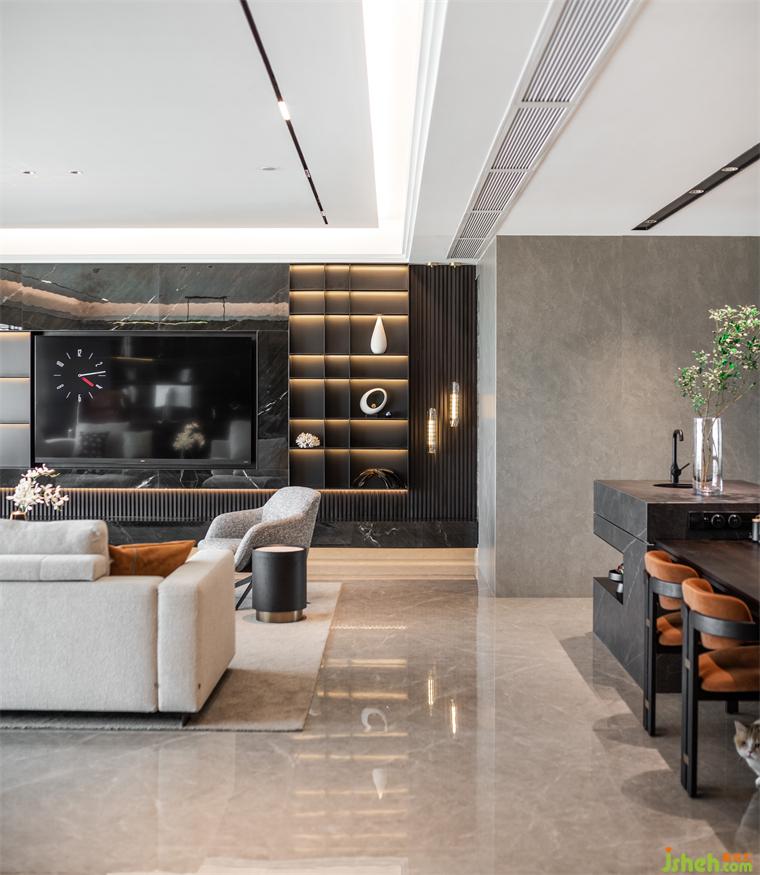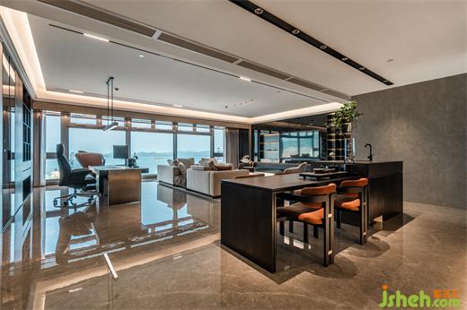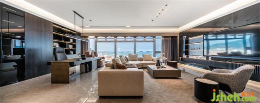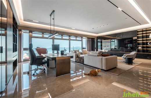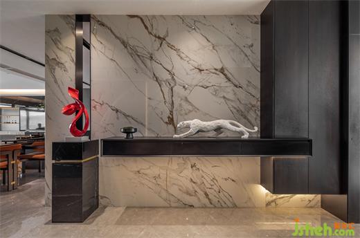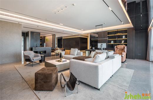 本案為現(xiàn)代輕奢風格,業(yè)主是成功青年企業(yè)家,喜歡深色調(diào),深圳豪宅設計整體空間我們利用深色石材,金屬,及煙熏橡木打造沉穩(wěn)的空間品質(zhì)。