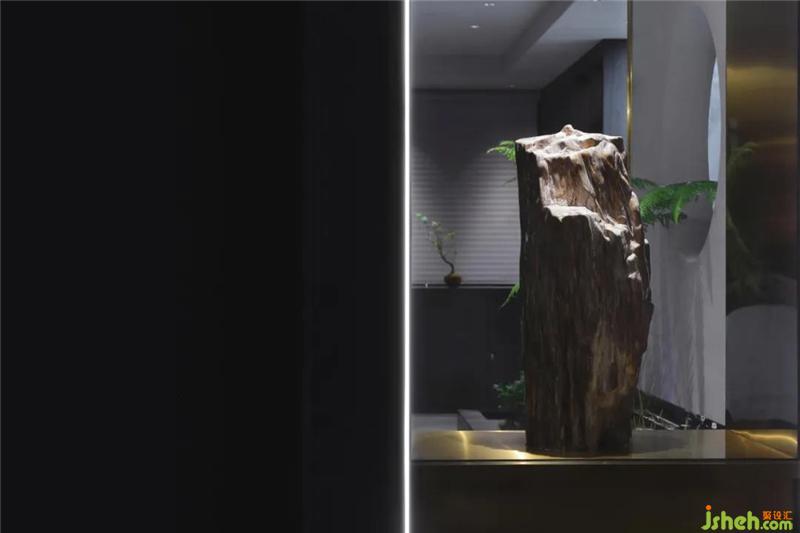 入口門廊設(shè)一木化石,矗立于櫥窗內(nèi)向自然敬意。入室的第一感覺,南京辦公室設(shè)計仿如一道門檻,靜謐與光明在此相會。