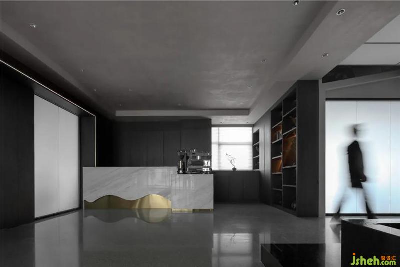 接待臺的手磨咖啡機,是業(yè)主為迎接客人準備的 一份愜意,片語之間留下的香氣與溫暖。辦公區(qū)體現(xiàn)人性,由 共享到私密,由靜謐到光明。
