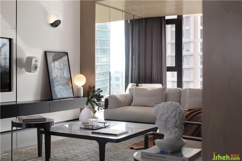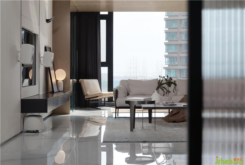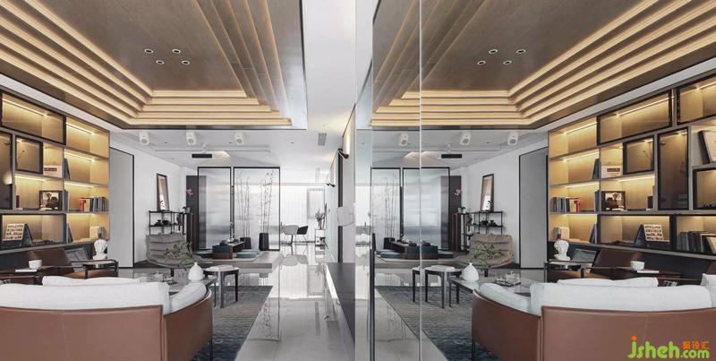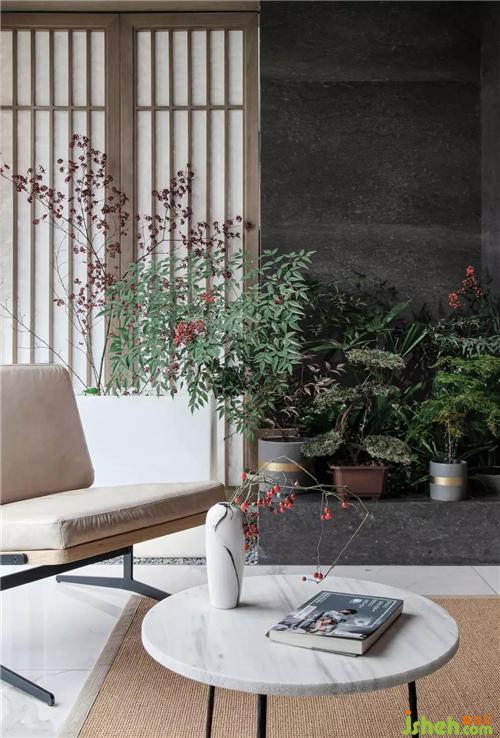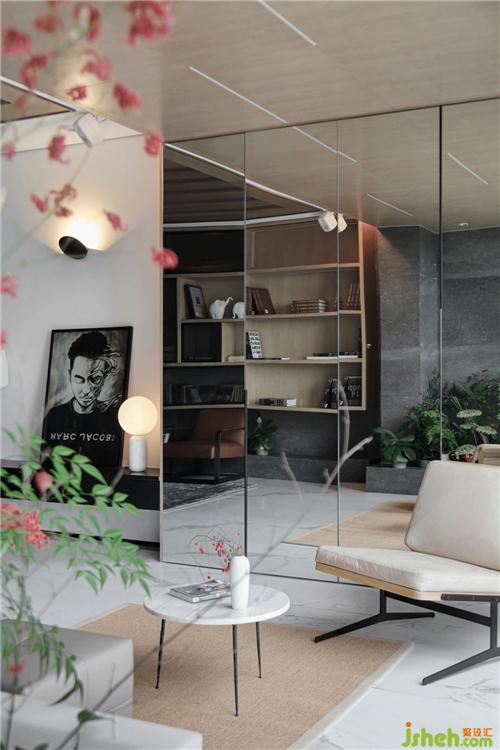 不經(jīng)意間看到一處小景,將室內(nèi)空間和窗外的景色融為一體,而且設計師不滿足于此,在對面安置了鏡面,將遠處的牛首山引入到空間的視線里。對于造景,設計師用借景手法營造出對自然的崇敬,意外而驚喜。設計師敬畏于自然,把陽光和雨露、四季現(xiàn)象結(jié)合于室內(nèi)空間,讓空間順從自然規(guī)則。當然,我們已經(jīng)忽略了眼前的落地玻璃窗,它就好比人的眼睛一樣”晶瑩透徹”,看著眼前美麗的世界。