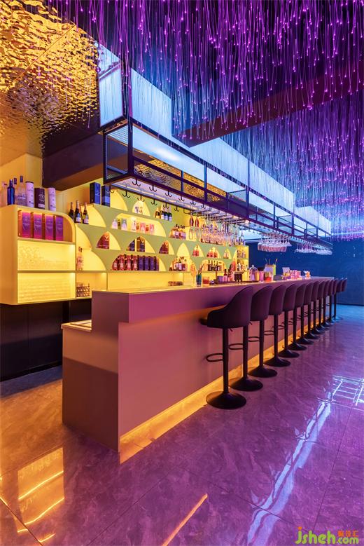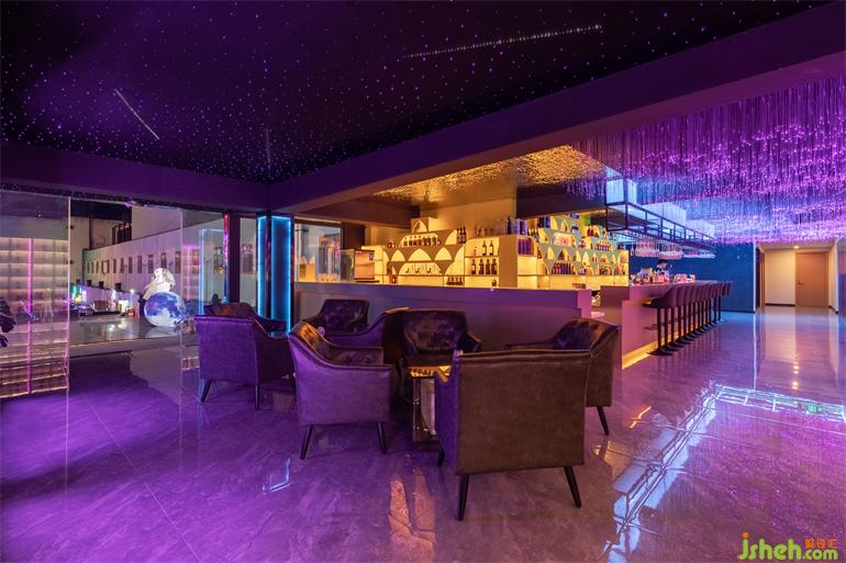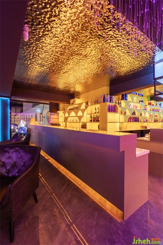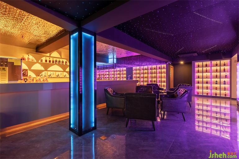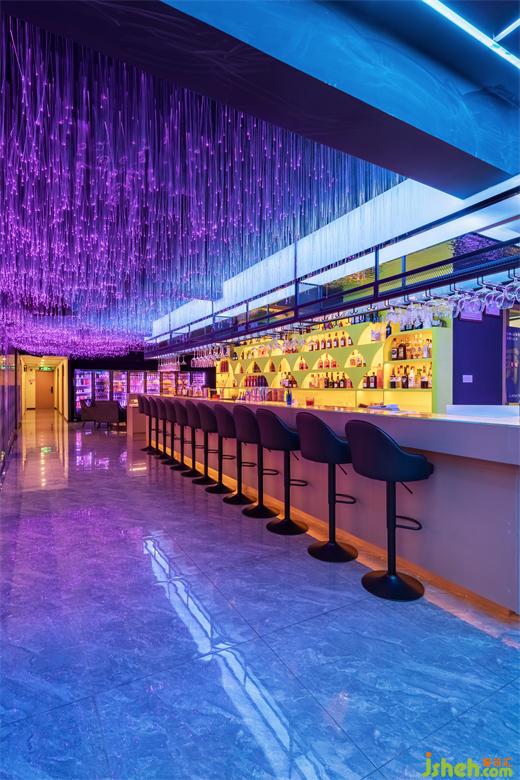 回到棋牌室設(shè)計(jì)本身,我們的目的是為了構(gòu)建一個(gè)當(dāng)代年輕人喜歡的娛樂空間,這個(gè)空間一定是集潮流、熱情、律動(dòng)為一體的。為了實(shí)現(xiàn)這樣的感受,我們運(yùn)用了對(duì)比度強(qiáng)烈的紫藍(lán)黃三色以確保整個(gè)空間有足夠的視覺沖擊力。在空間中我們運(yùn)用不銹鋼及吊線燈,,這樣的設(shè)計(jì)讓動(dòng)態(tài)的元素持續(xù)出現(xiàn)在空間中,始終讓空間維持著律動(dòng)。