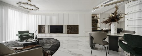客廳采用對稱設(shè)計,家裝設(shè)計沒有過多的色彩修飾,保留原木的線條感,塑造純粹嫻雅致質(zhì)感。流暢自然如高山流水,于不經(jīng)意間流露高級質(zhì)感,打造時尚禪意之美。