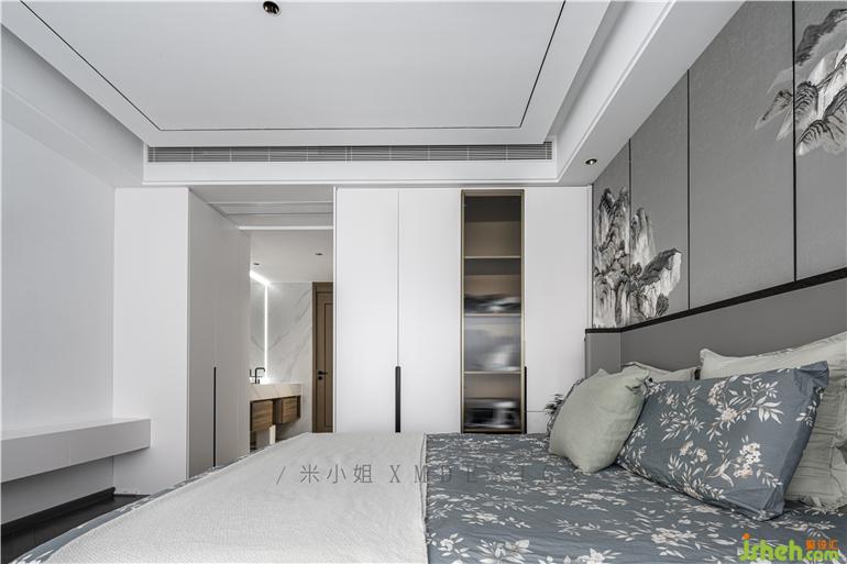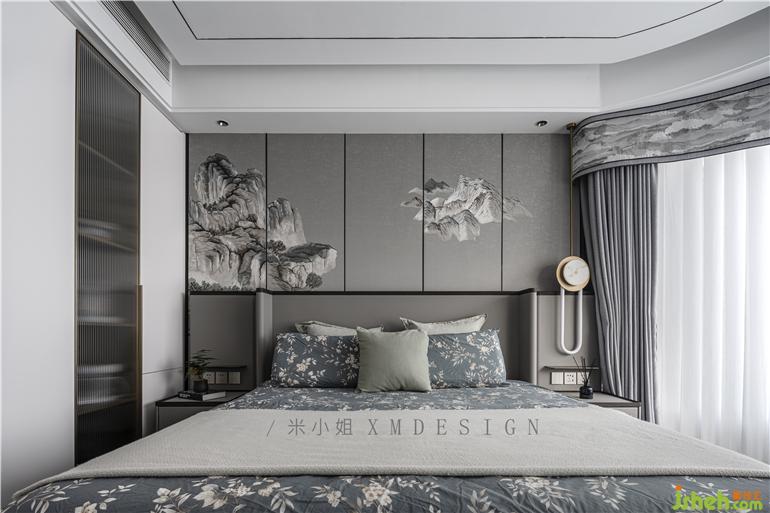次臥多重中式元素輔以軟包點綴,中式床頭搭配錯段的山水畫,家裝設計讓整體空間明亮通透,于不刻意間刻畫出最極致的東方生活美學。
