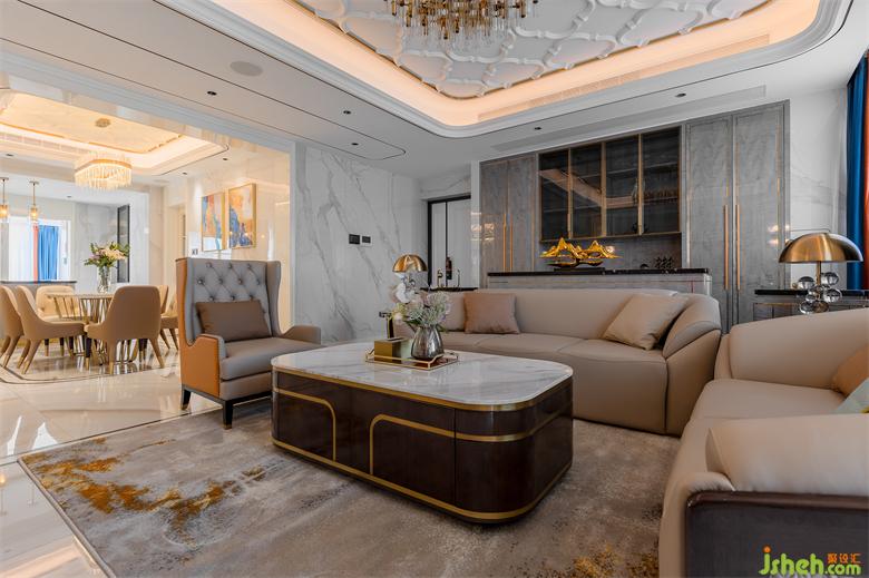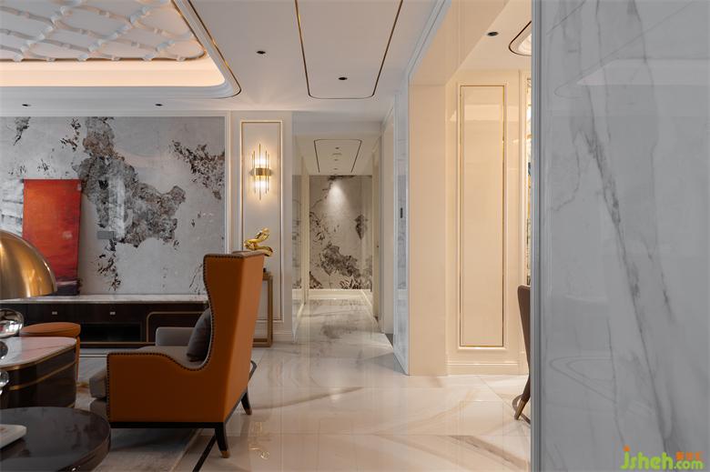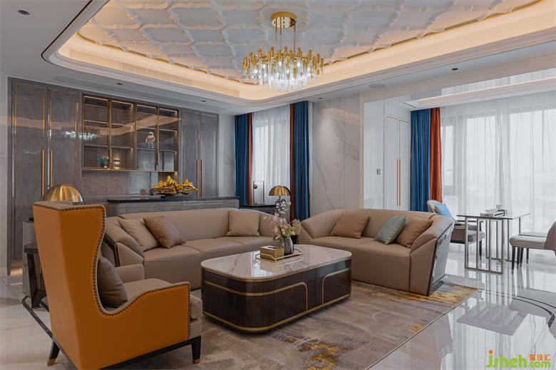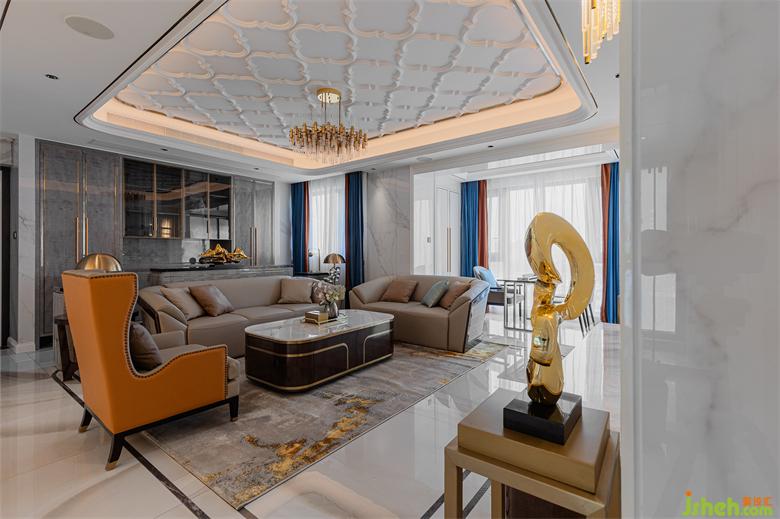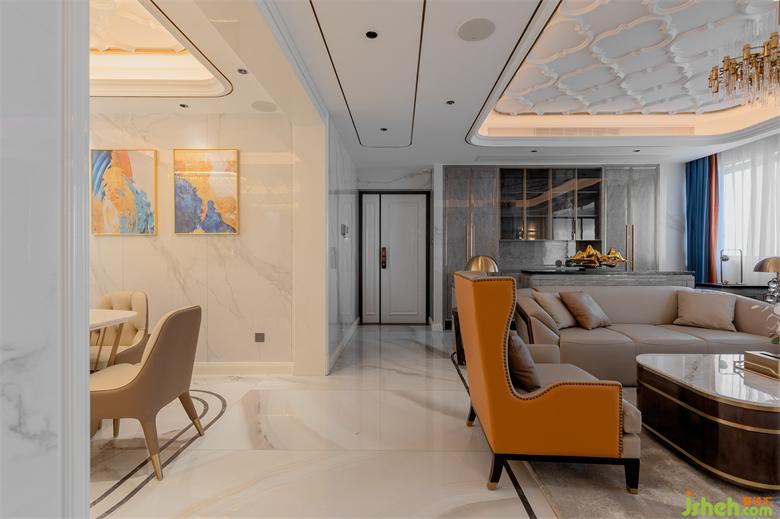 本大平層設(shè)計位于五緣灣核心地段,屬于精品大平層戶型,設(shè)計風格以簡歐輕奢為主。設(shè)計師在顛覆傳統(tǒng)的歐式風格中,融入混搭與現(xiàn)代輕奢元素后,更加凸顯傳統(tǒng)與現(xiàn)代的魅力。主體采用暖白色調(diào),運用素雅灰作為搭配色,少量橙色、藍色作為點綴之筆,簡歐與現(xiàn)代輕奢的結(jié)合,使效果上沒有像傳統(tǒng)歐式那么豪華,但又不會太簡單,簡約中透出精致和大氣之感,也映襯出主人不凡的生活品味。