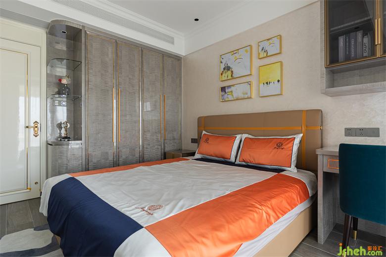 小孩房以米色為主要基調(diào),充滿活力的床品再搭配簡單的掛畫,彰顯小孩天真活潑、率真的天性。