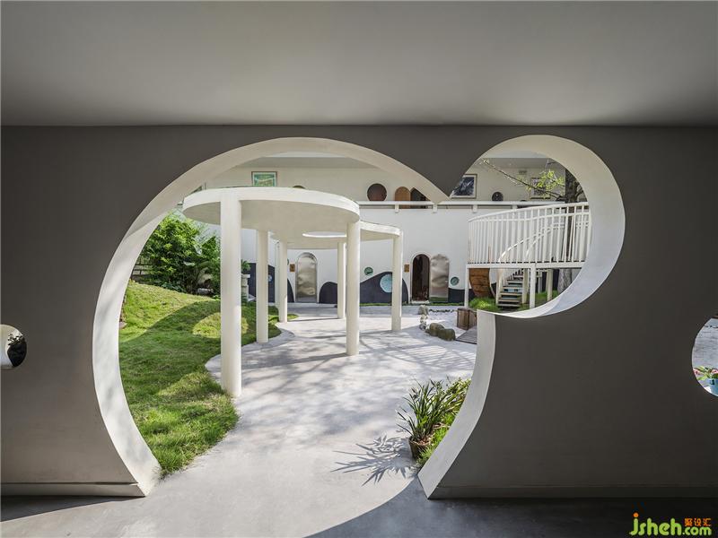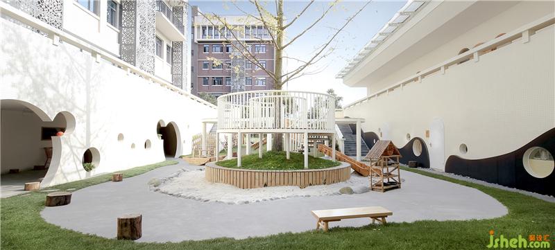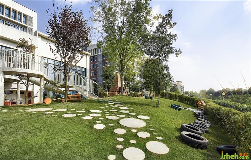 Following the circle stepping stones toGuangMo, children can have a closer contact with nature in the outdoor environment with full of grass, sunshine, earth, sand and stones, and have a variety of interesting experiences.The different functions and sizes of children's amusement facilities ensure the diversity of interests and ensure that children of all ages can find new inspirations here. Bunker, steppingstones, plants with four distinct seasons provide a variety of education methods. Teachers inschool often take children to do things themselves, playing with sand, pinching mud, planting trees, picking fruit, getting close to nature and releasing their authenticity.The presence of hand washing bowl allows children to develop habits of cleaning after playing and adds a sense of tranquility to theschool. Here, the plants with four seasons let children feel the coming and going of different solar terms directly.