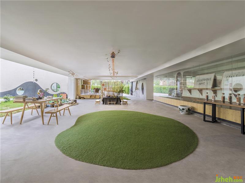 踏著圓形的汀步邁入光墨書(shū)院,孩子們能在遍布青草、陽(yáng)光、泥土沙石的戶外與自然親密接觸,進(jìn)行各式各樣的趣味體驗(yàn)。孩子們的游樂(lè)設(shè)施功能、大小不盡相同,保證了趣味的多樣性,也保證了各個(gè)年齡段的孩子都能在此找到新的啟發(fā)。沙坑、汀步、四季分明的植被給了教育方式多種選擇——書(shū)院的老師時(shí)常帶著孩子們親自動(dòng)手,玩沙子、捏泥巴、種樹(shù)、摘果子、親近自然,釋放天性。手洗缽的存在讓孩子在玩樂(lè)過(guò)后養(yǎng)成清潔的良好習(xí)慣,同時(shí)為書(shū)院增添了一絲靜謐。在這里,四季分明的植物讓孩子們直觀感受到不同節(jié)氣來(lái)來(lái)去去。裝修公司