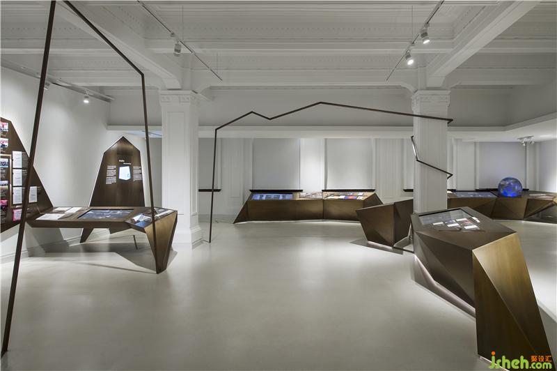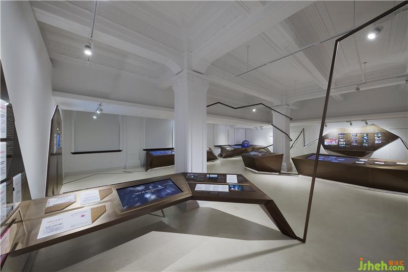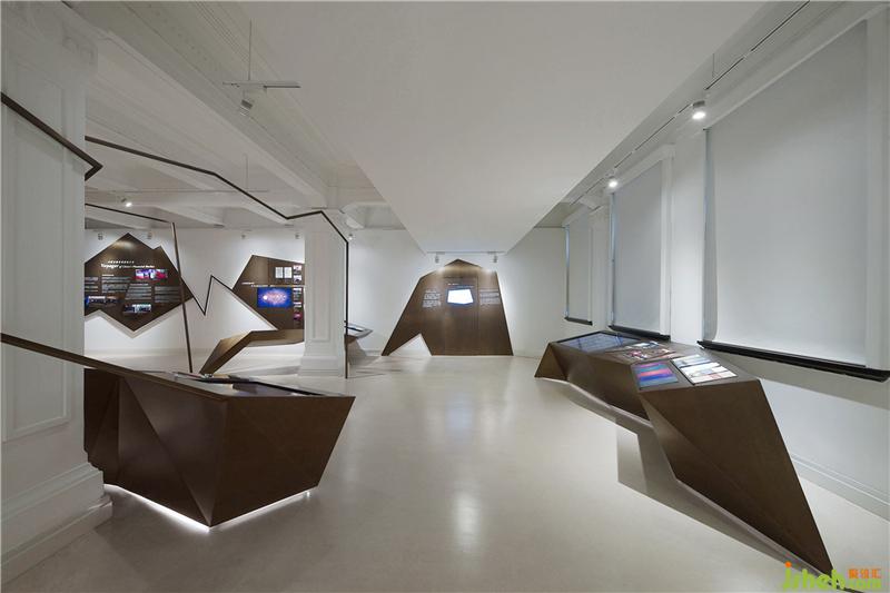 CROX闊合團(tuán)隊(duì)通過綿密的策展會(huì)議,學(xué)習(xí)復(fù)雜龐大的金融清算專業(yè)系統(tǒng),分析建筑社會(huì)文史,逐步建構(gòu)屬于上海清算所的展覽定位,提出WATCHER(守衛(wèi)者)&VOYAGER(航行者)的策展命題。不同于一般的展覽策劃邏輯,清算所展示館透過WATCHER&VOYAGER兩種觀點(diǎn)傳達(dá)了上海清算所豐富的專業(yè)及歷史含量。設(shè)計(jì)層面取材兩英文單詞的字首,以連續(xù)的W和V字母形象串接一道趨勢(shì)線,形象地將其整合為金融業(yè)的通用視覺語言,穿梭在百年建筑空間中,時(shí)為主體,時(shí)為側(cè)軸,營(yíng)造展覽的時(shí)代動(dòng)感,在不同的展示區(qū)域,大量運(yùn)用數(shù)碼技術(shù),將復(fù)雜的金融業(yè)務(wù)原理轉(zhuǎn)換成時(shí)尚的視覺符號(hào)與互動(dòng)科技。整座空間成為一座大型的裝置藝術(shù),包含入史料文物、影像紀(jì)錄、實(shí)體模型、銅雕紀(jì)錄等等,運(yùn)用材質(zhì)、燈光、文史論述、數(shù)碼設(shè)計(jì)、空間設(shè)計(jì)等跨越不同的時(shí)代的設(shè)計(jì)符號(hào),喚醒參觀著潛在文化印象,觸發(fā)認(rèn)同感,形成極具張力的金融文創(chuàng)體,屬國(guó)內(nèi)少見的創(chuàng)新展示型態(tài)。裝修設(shè)計(jì)