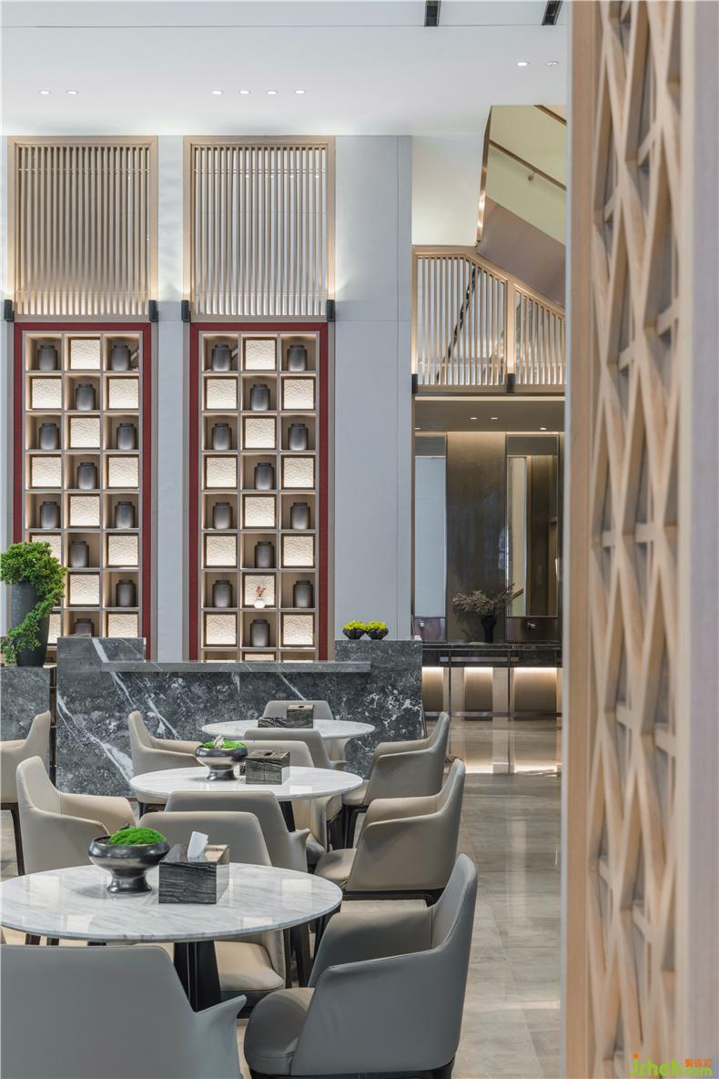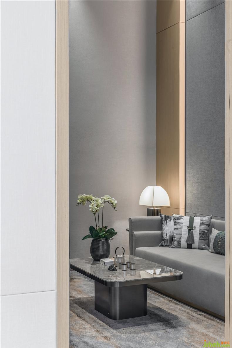 木是道家五行之一,銷(xiāo)售中心以原木格柵作為構(gòu)成空間的基本元素,疏離卻有序,這為光提供了絕佳的游戲場(chǎng)所。在這個(gè)空間中,光不再是一種獨(dú)立的元素,它與木格柵互為背景,相互介入,調(diào)和充盈了區(qū)域,裝修設(shè)計(jì)也讓充滿(mǎn)生機(jī)的空間沉靜下來(lái),不急、不棄、不爭(zhēng)、不顯