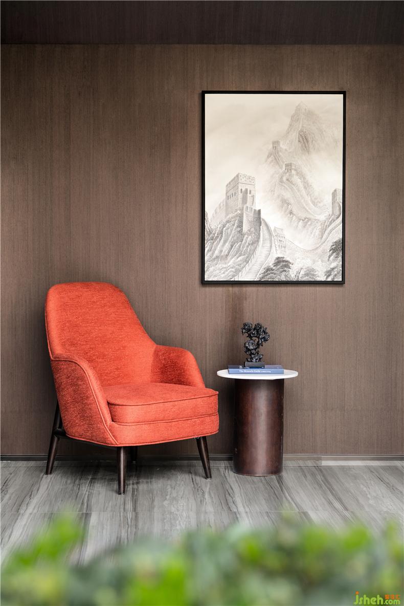 背景呼應寫意山水,與室內(nèi)格調(diào)相輔相成,