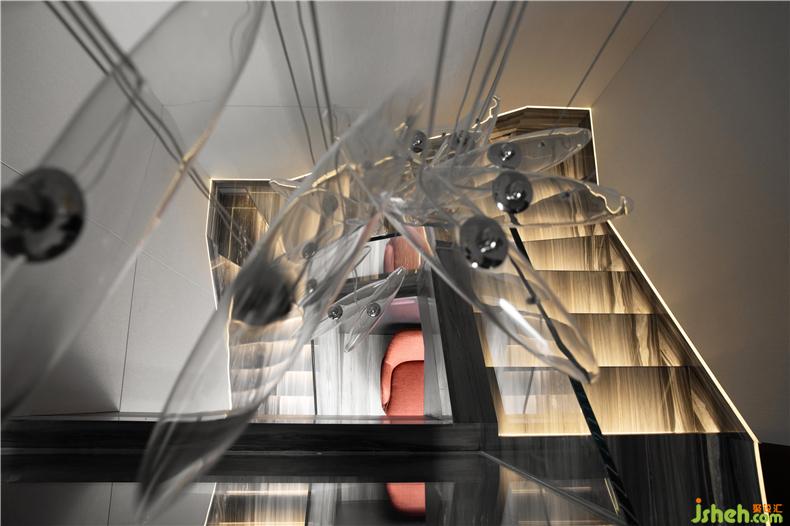 透過光滑氤氳的大理石地面,