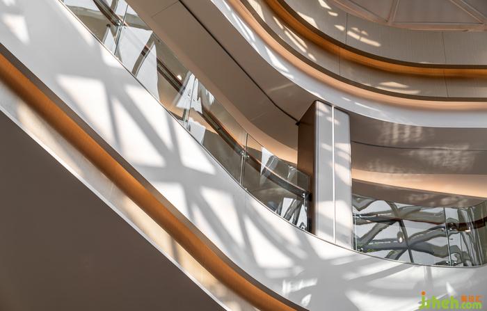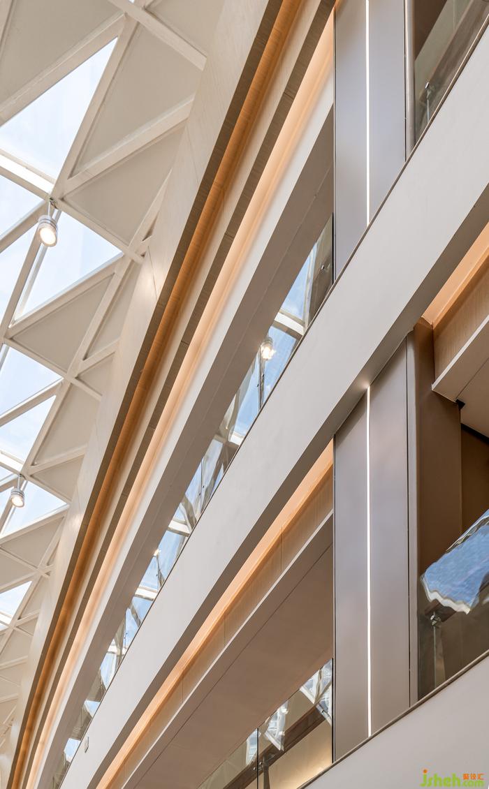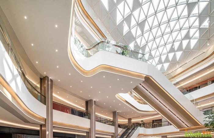 空間整體以星云白為基調(diào),輔以溫暖的棕色系,宛如一杯散發(fā)著馥郁清香的奶泡拿鐵,購(gòu)物中心設(shè)計(jì)讓空間充滿甜蜜的氣息。生活的醇香彌散,星河的夢(mèng)想在空間中演化,天花、扶梯、中庭等建筑結(jié)構(gòu),有機(jī)融合星軌的線條,與幾何排列的星幕光源,營(yíng)造出簡(jiǎn)潔、經(jīng)典、時(shí)尚的空間氛圍。