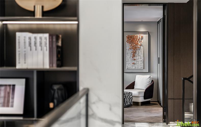 二層為主人私享空間。在這里,頂層復(fù)式設(shè)計(jì)以舒適為念,延續(xù)一層的宅形與氣質(zhì)的同時(shí),整個(gè)空間圍繞主人的日常軌跡去延伸演繹,讓一切自然發(fā)生,渾然一體。布局連通整個(gè)二層空間,從臥房、盥洗室、衣帽間,再到書房、兒童房,兼具居家與親子照顧的便利性。