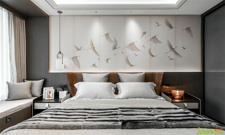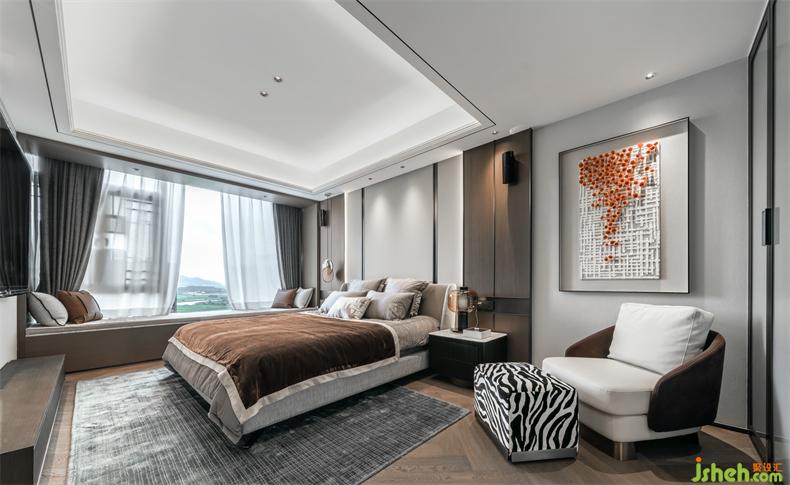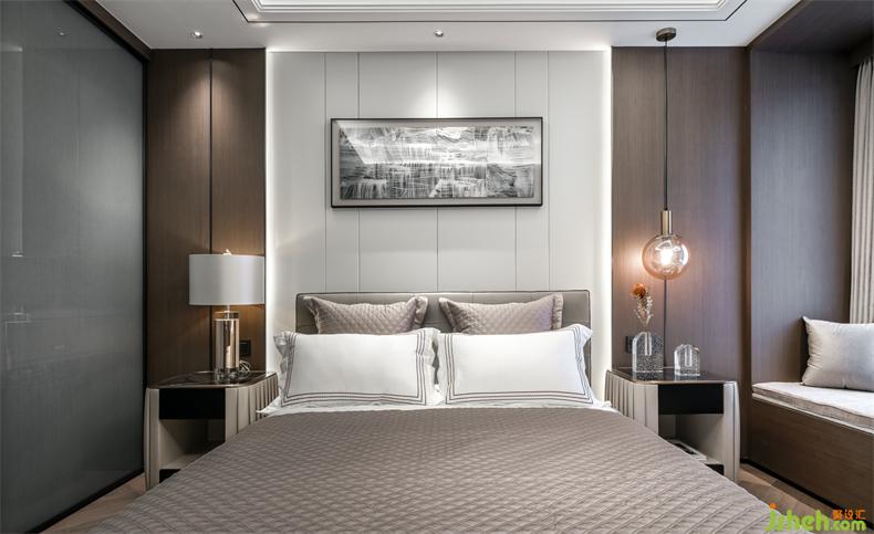 長輩房,感受到的是獨(dú)處時(shí)的平和寧靜,頂層復(fù)式設(shè)計(jì)更偏向于中式現(xiàn)代風(fēng),用實(shí)木、皮質(zhì)、棉麻等材質(zhì)填充視野,無主燈設(shè)計(jì)讓光影更柔和自然,突出舒適宜居的氛圍感。