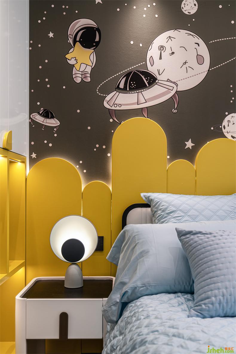 兒童房的設(shè)計(jì)從孩童的天性入手,浩瀚星空、宇航飛船和明黃色基調(diào)喚醒了童真與想象。用愛意呵護(hù),陪伴小朋友慢慢長大。