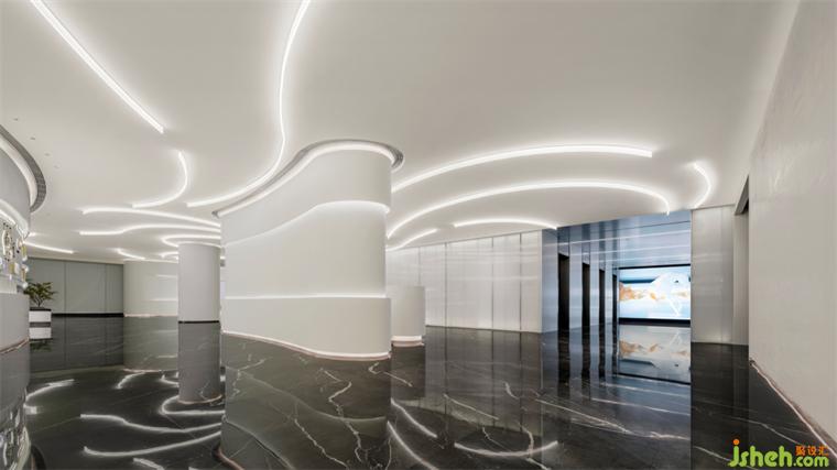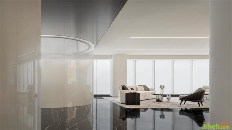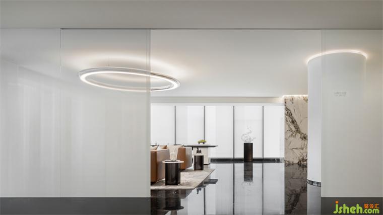 弧度家具順滑的線條與金屬質(zhì)感的室內(nèi)線條相互呼應(yīng),創(chuàng)造出硬朗與松弛之感。展示中心設(shè)計(jì)曲線構(gòu)造的沙發(fā)具有流動(dòng)的質(zhì)感,和撫慰人心的魔力,不僅提升了整體布局的藝術(shù)表現(xiàn)力,也讓人們得到視覺和心理的放松與歸屬。