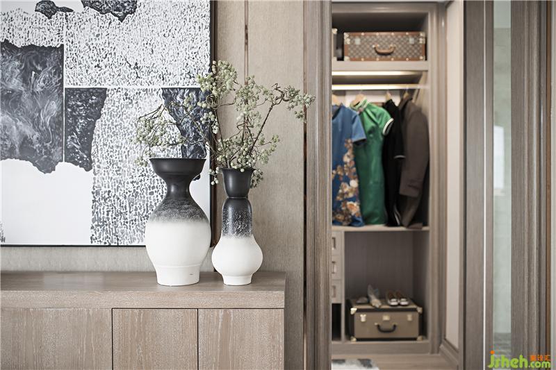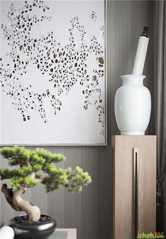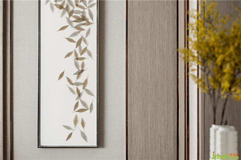 淺木色色系為主,荼白、黛綠、緋紅的元素點綴其中,視覺上顏色高度和諧,一種低調(diào)卻不失講究的精致感悄然流露。設(shè)計師以傳統(tǒng)的藝術(shù)脈絡(luò),樣板房設(shè)計通過細節(jié)串聯(lián)了整個視覺空間。