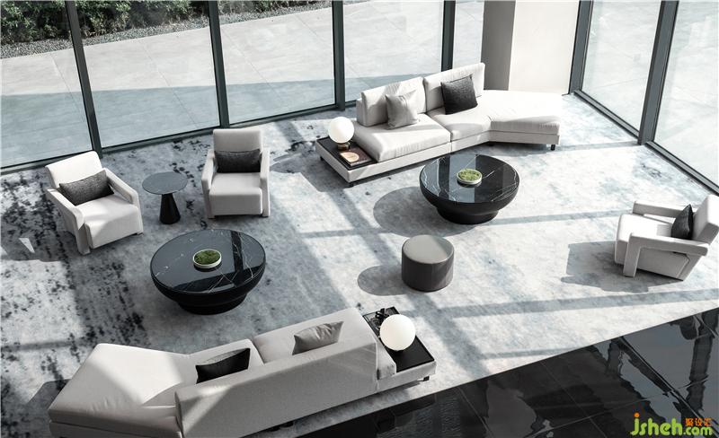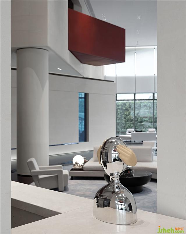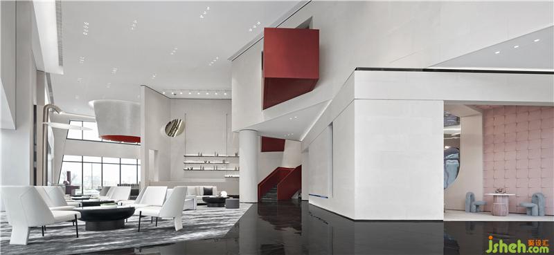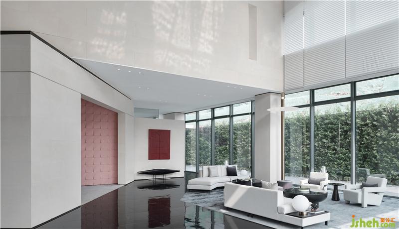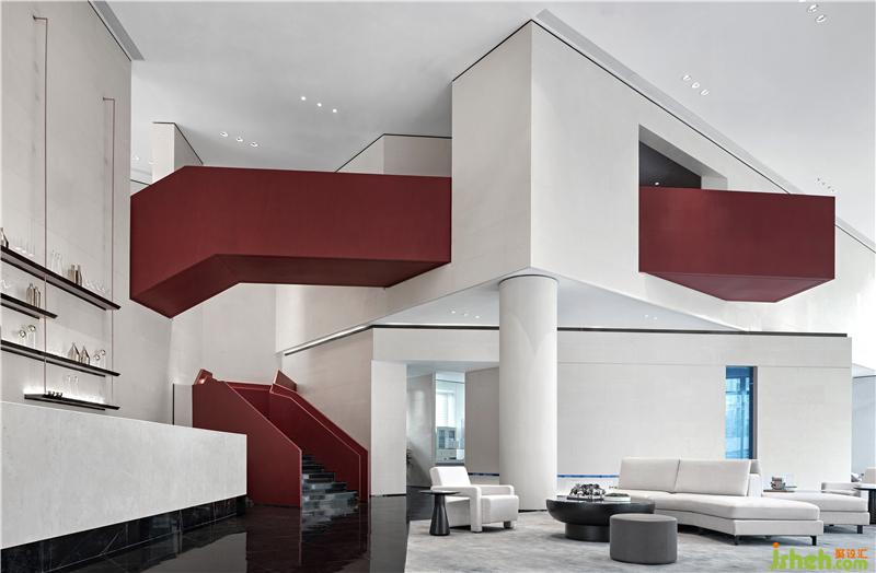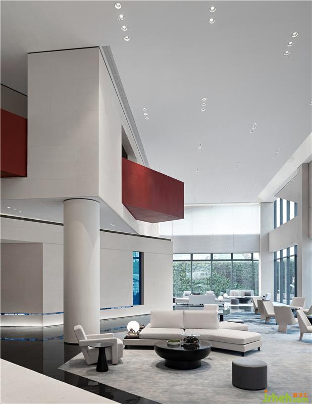 墻體結(jié)合水平方向的橫挑,除了自身的顏色以及自然的肌理,溫暖了空間的色差,捕捉著一天當(dāng)中光影的變化。售樓處裝修設(shè)計平衡了空間中的色彩對比。