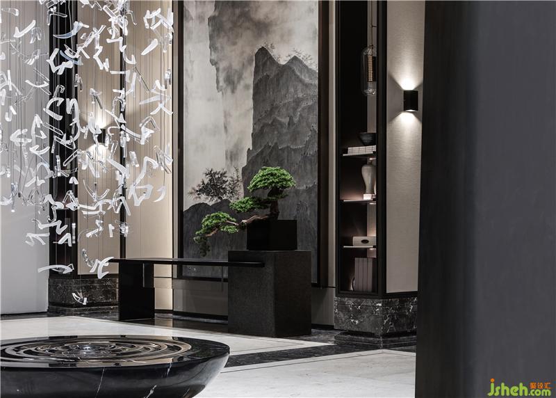 售樓處設(shè)計將自然的鬼斧神工融入這人文畫作,裂紋大理石就像隨意的潑墨,“或揮或掃,或淡或濃,為山為石,為云為水”。