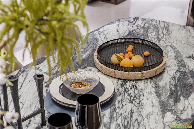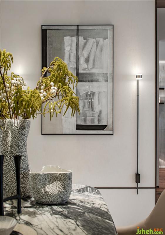 意趣在空間中無所不在,大理石質(zhì)感的餐桌,現(xiàn)代雅致的餐桌椅,搭配一盞簡約的吊燈,呈現(xiàn)出優(yōu)雅舒適的用餐氛圍,而墻上的裝飾畫,讓空間更有想象藝術(shù)感。游歷其間,有如娟娟如洗的自然清新、有如氣質(zhì)韻成的情濃境深。