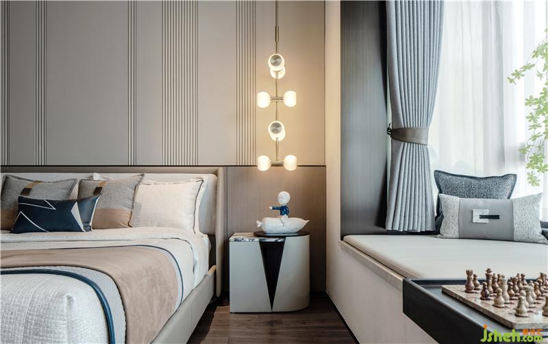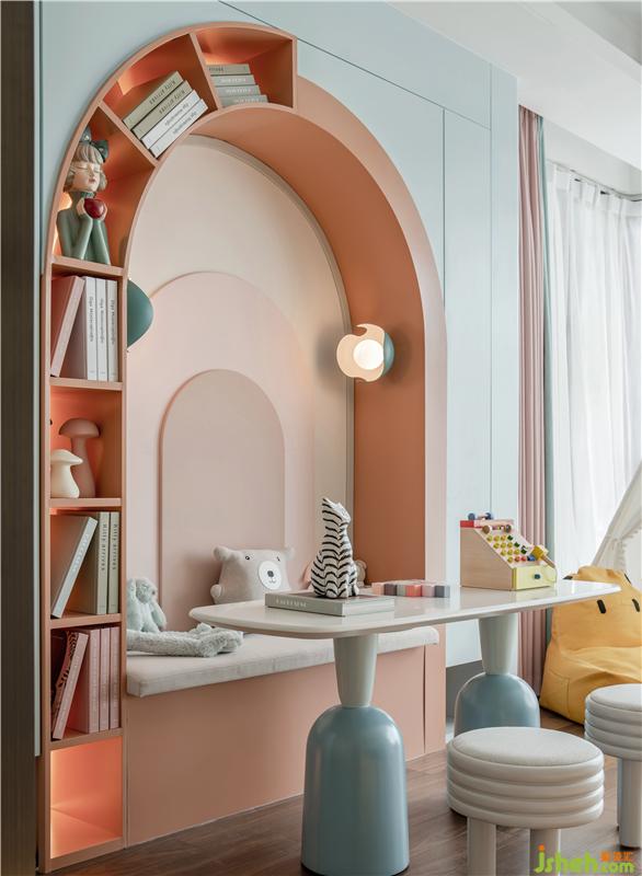 無論是床頭柜,還是墻面裝置,無不流露出對積木拼接的活化運用,構(gòu)筑起這個歡樂的童話王國,讓其搭載孩童稚嫩而精彩的夢。為未來描繪無限暢想。