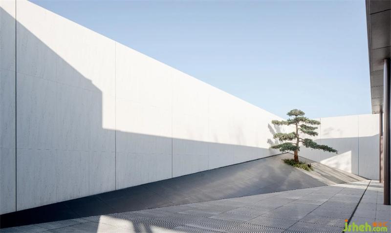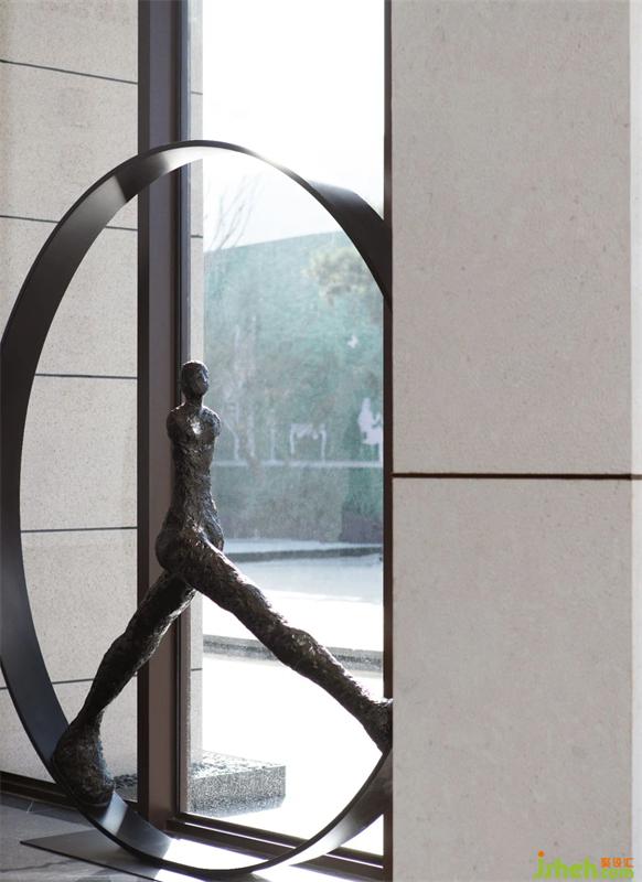 此處為入門處裝置背面為玻璃 ,利用玻璃的通透制造與自然光影的結(jié)合,利用雕塑自身的形態(tài)打造光影的靈動(dòng)。
