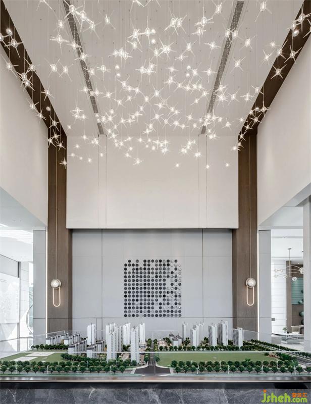 “影動(dòng)一星辰 古今兩相宜”沙盤區(qū)天花藝術(shù)裝置,以“星”為元素,來(lái)展開星星點(diǎn)點(diǎn)匯聚成星河。