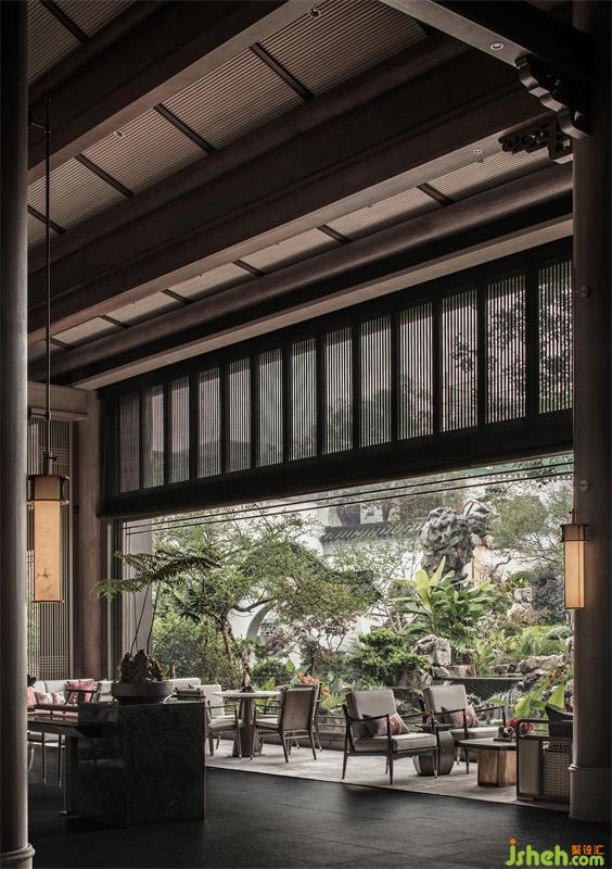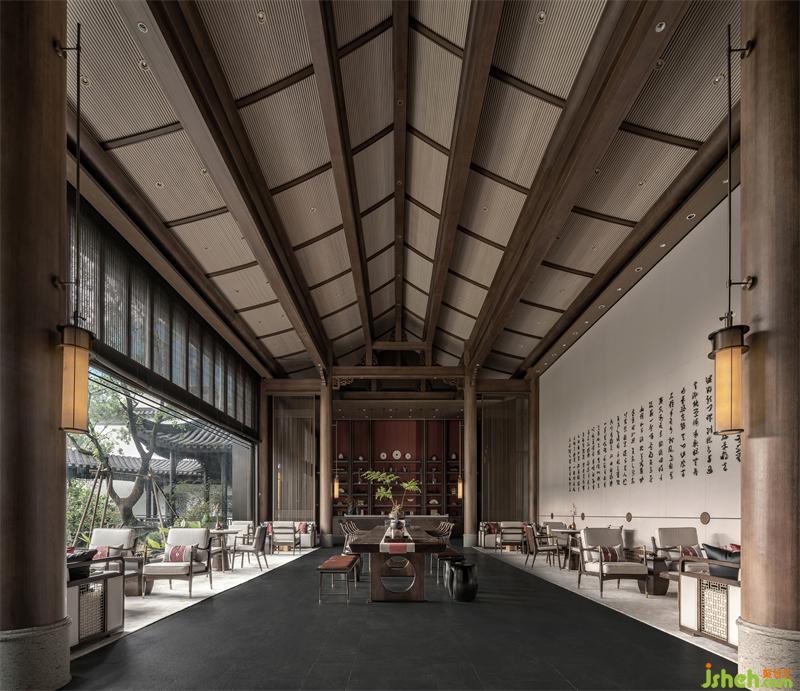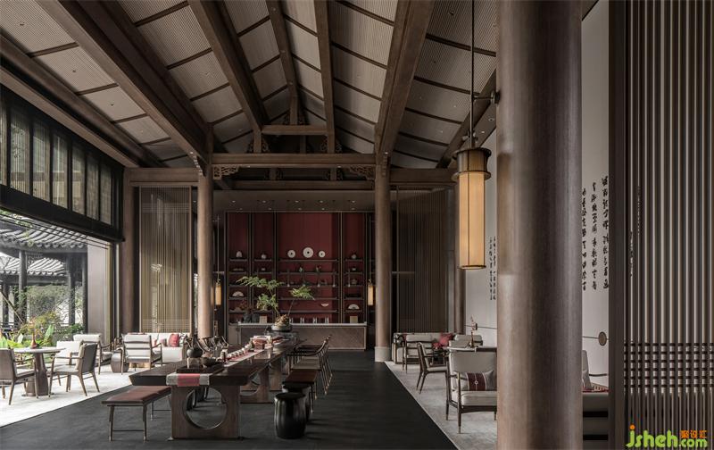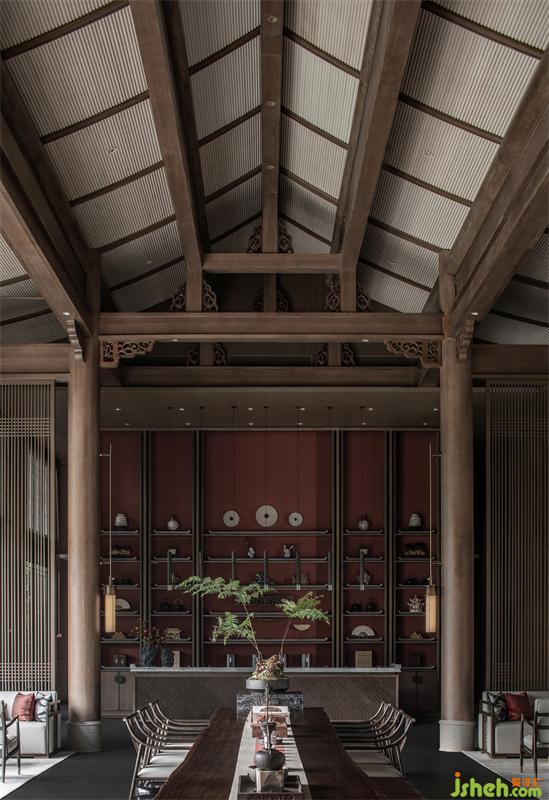 散客洽談區(qū)的布局,圍合而克制,但與其他空間因一切有了光的流動(dòng)和停留,而又讓彼此各自推向獨(dú)立,又在整體歸一中實(shí)現(xiàn)了互為對(duì)話。 這里,更像是一個(gè)不疾不徐等待清晨到來(lái),或因流連暮色而靜靜發(fā)呆的一個(gè)空間。幻似時(shí)空隧道,一切應(yīng)了光的進(jìn)來(lái)、穿透或停留或離開(kāi),在自然與簡(jiǎn)單中平衡出諸多美的心境,寂寥而美好。