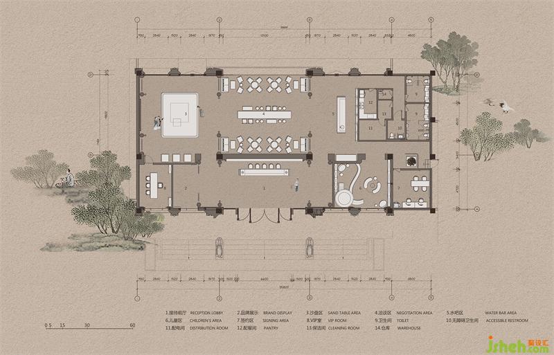 空間將時間與人文線索串聯(lián),售樓處設(shè)計用自然靜謐包裹雅正空間,再利用光影刻度將時間凝固保存,讓它們與空間中的藝術(shù)品一起回溯自然、出入古今。人在其中,如浸歷史的詩,如觸當(dāng)代的云,如沐湖面的風(fēng),任這般湖山意境交織出大道由心的從容,讓當(dāng)代的名人雅士能與先賢俊秀談笑風(fēng)生天地清。