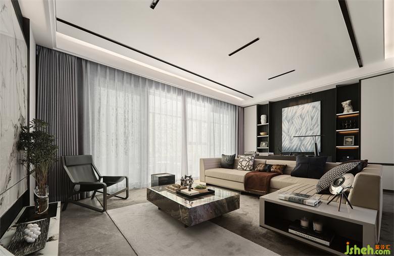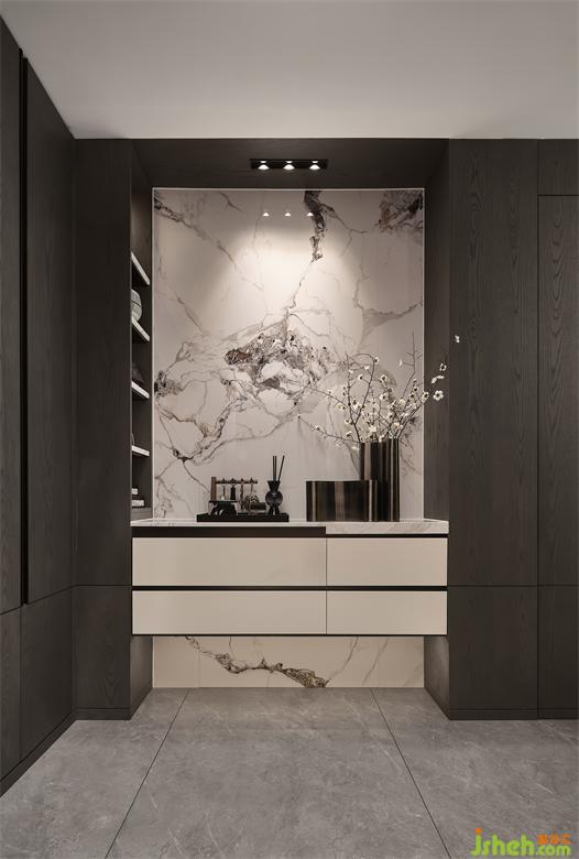 南京樣板房設(shè)計在黑白灰的酷炫質(zhì)感之上,石材與布藝的調(diào)和,時尚單品的加入,日常收納的貼心,都兼顧了空間的品位張力,與生活溫度感二者的平衡。